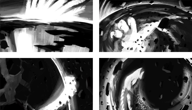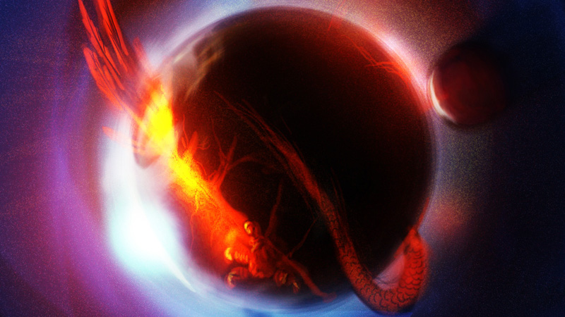All begins when the space dragon dies. Galaxies, suns and planets are born from dust of the dying creature.”