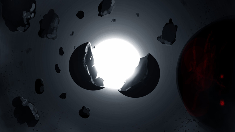 The hollowed crust of the earth as pieces of egg shells is fading away. It is moving towards the sun...